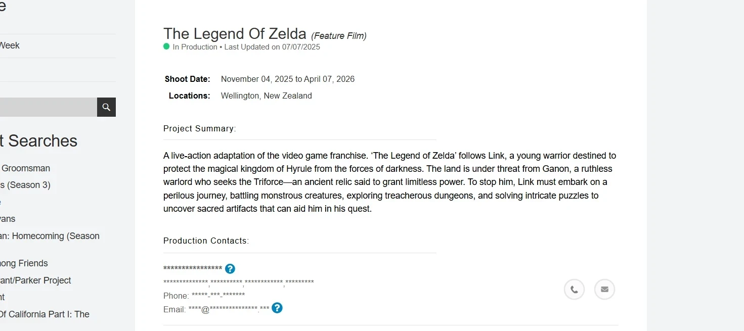 Тем временем фильм по «Зельде», похоже, перешёл на стадию производства, что означает начало съёмок.