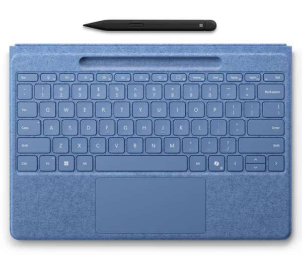 Габариты клавиатуры составляют 11,38 x 8,71 x 0,21 дюйма (289 x 221 x 5,25 мм) при весе 340 г. Она также совместима с комплектом Surface Adaptive Kit для людей с ограниченными возможностями. Клавиатура Flex доступна в черном или синем цвете и выполнена из материала под названием алькантара.