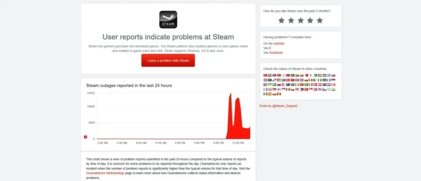 Valve пока не прокомментировала инцидент, но проблема сохраняется до сих пор — сервис то оживает, то вновь падает. Об этом свидетельствует актуальная статистика на сайте DownDetector.