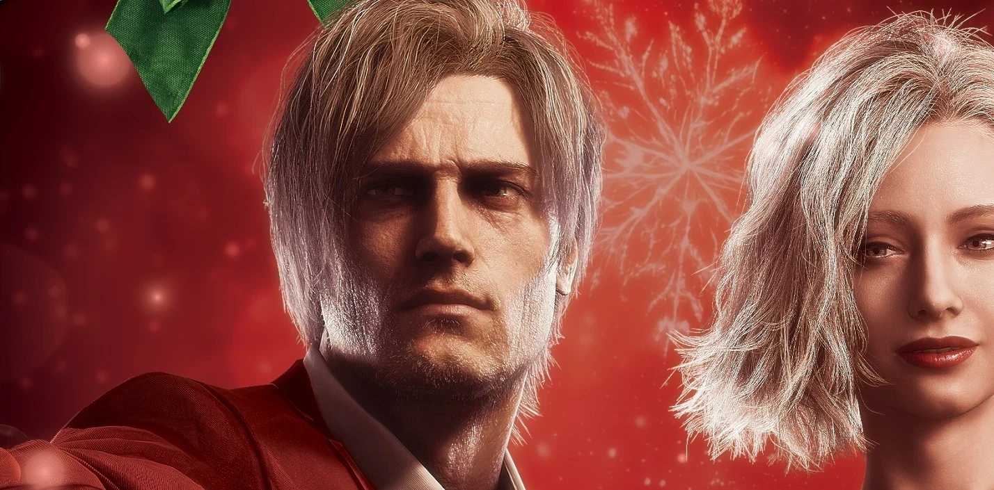 Фанаты Resident Evil обсуждают разные глаза Леона из Requiem на новогодних открытках