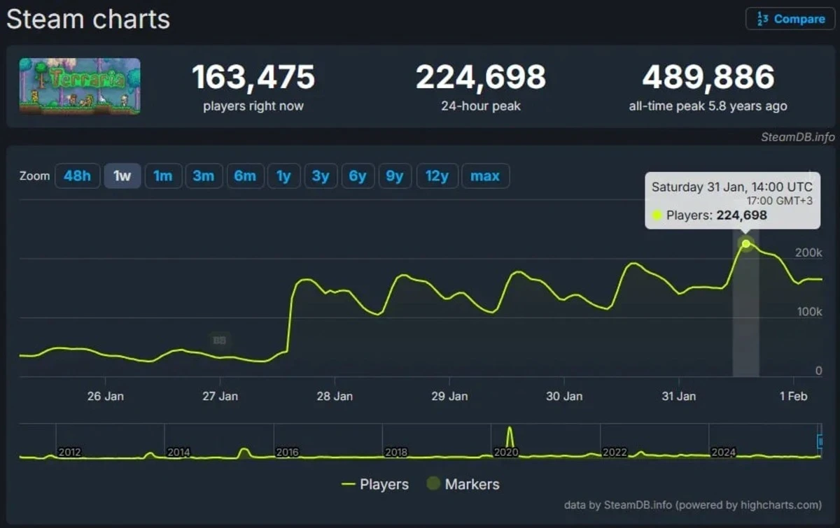 Главная » Статьи » Онлайн в Terraria пробил 200 тысяч человек — такое произошло впервые с 2020 года
