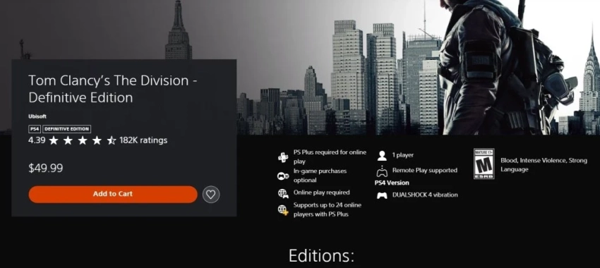 Ожидалось, что новое издание Tom Clancy’s The Division выйдет в марте. Но в сети заметили, что оно уже доступно для покупки в магазинах Microsoft и PlayStation. При этом в самом Ubisoft Store на момент написания новости новинки ещё нет в продаже.