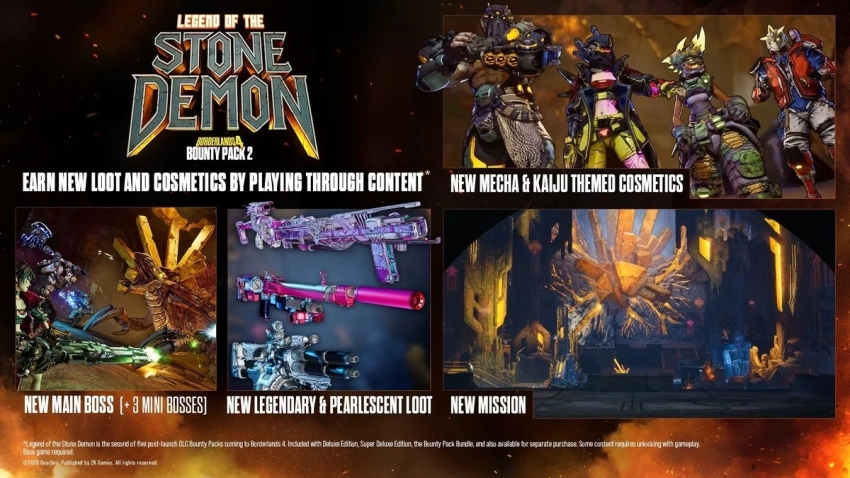 Legend of the Stone Demon предложит новую цепочку заданий, посвящённую культу Аугеров и их ритуалам в честь Каменного Демона. Игрокам предстоит исследовать древнюю пещеру в компании миниатюрного спутника Дефайента Калдера, сразиться с новыми врагами и несколькими мини-боссами, а также получить свежую легендарную добычу и косметику.