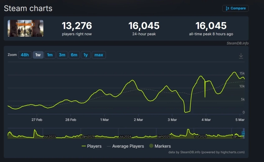The Division 2 обновила пиковый онлайн в Steam впервые с 2023 года